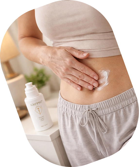 Natpro is a water-based, organic cream containing a carefully calculated amount of progesterone. When applied to the skin, the progesterone works with your body to stabilize your hormone levels and relieve you of so many painful and inconvenient symptoms.