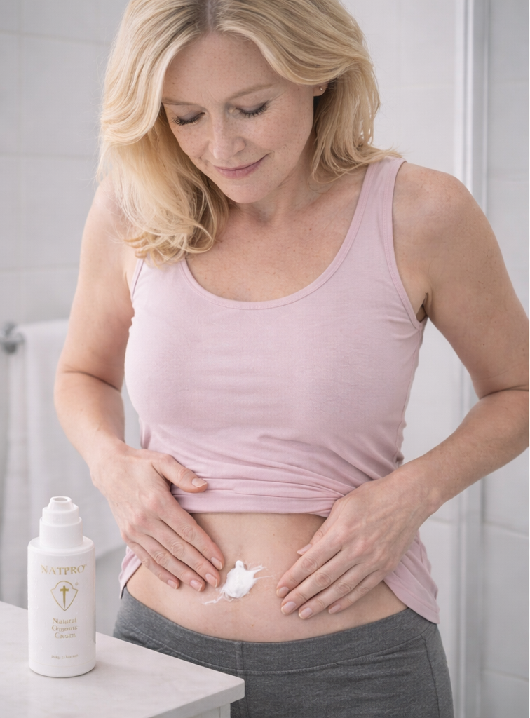 Our bodies make natural progesterone all the time - this natural progesterone is a unique substance with unique properties that cannot be faked. it is the single most important hormone made by the female body and is essential for the health of virtually every cell and organ of the body. Besides helping to regulate the menstrual cycle of women, progesterone also boosts the immune system, reduces swelling and inflammation, stimulates and regulates the production of the thyroid gland, and keeps blood clotting levels at normal values. Progeserone helps with depression and insomnia and it also has a callming effect. Progesterone is also regarded as an "anti-aging" hormone, helping to keep bones strong, producing collagen and keeping nerves functioning at appropriate levels.